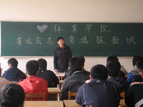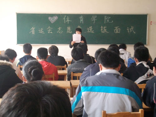 谈球吧第二十二届省运会志愿者招募工作已全面展开。4月15日下午谈球吧官方网站团总支在13号教学楼进行的志愿者面试院部选拔活动,吸引了公司150余名同学参加面试。担任此次面试的评委有团总支副书记、院社团负责老师董婧,曾担任过十一届全运会志愿者的孔令华、刘哲。