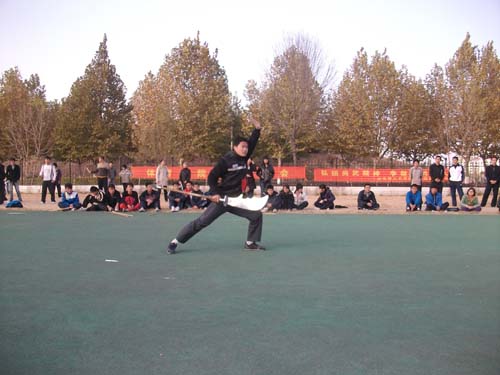 交流会分拳术、器械、集体拳术三组。伴随着一套精彩的拳术表演,交流会正式开始。和着动感的音乐节拍,武术爱好者在现场尽情发挥,灵活多变的单刀、刚柔并济的拳术、灵巧敏捷的枪术、威猛的春秋刀和气势不凡的双节棍给现场观众带来视觉上的冲击,紧张处让观众屏息以待,精彩处让观众掌声雷动。精彩的表演将现场一次次推向高潮。其中,整齐划一的集体拳,乌龙绞柱、鲤鱼打挺等动作无一不表现出男儿的血气方刚;巾帼不让须眉,女生的侧扑、劈叉等动作做的有模有样,最后,交流会在一套集体太极拳表演中落下帷幕。