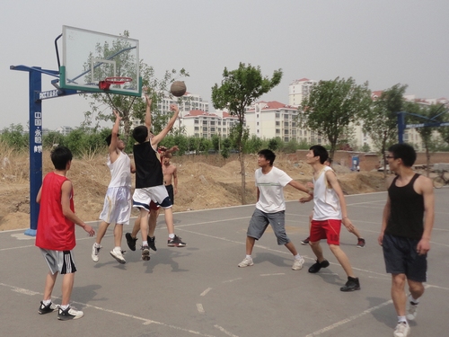 5月4日上午,体育教育0901班和0902班团支部在第三体育场举行篮球友谊赛。比赛期间,队员们传球精妙,配合默契,抢断干净利落,投篮果断准确。赛场上,双方相撞后一笑而过,跌倒了互相扶助,展现出其乐融融的和谐氛围。最后,双方队员握手拥抱以示友好。