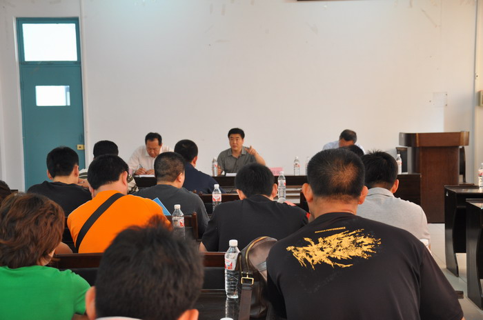 (5月9日下午,公司在公司三楼会议室召开运动训练专业招生校外裁判工作会议,淄博市体育局副局长高义波、公司人才招聘处处长艾修俊、公司经理李丰祥及校外裁判参加了会议。)