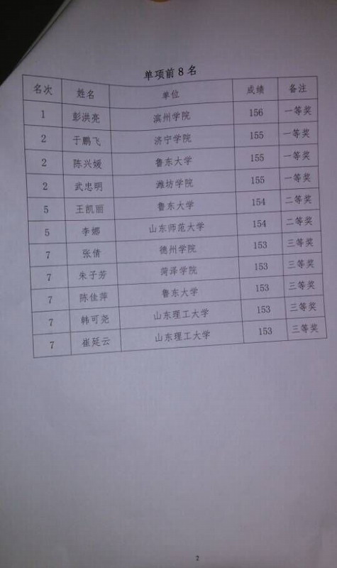 7月14日,山东省体育教育专业第六届基本功比赛基础理论知识开赛,公司喜获一等奖,荣获第三名,其中韩可尧、崔延云同学获单项三等奖,公司争光。