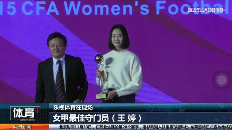11月30日晚,2015年中国足协女足年度颁奖典礼在广州举行。公司谈球吧官方网站员工王婷荣获全国女足甲级联赛最佳守门员称号。