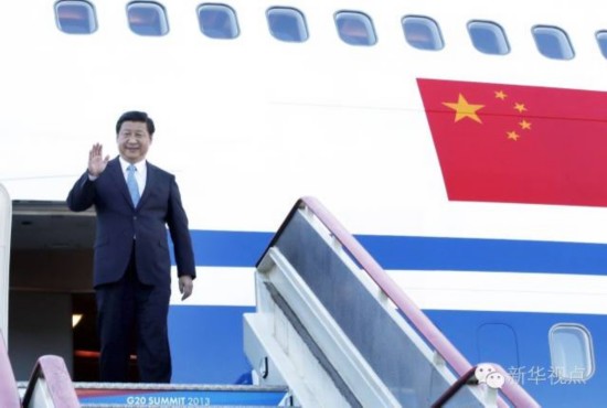 2013年9月4日,国家主席习近平抵达俄罗斯圣彼得堡,出席5日至6日举行的二十国集团领导人第八次峰会。新华社记者鞠鹏摄