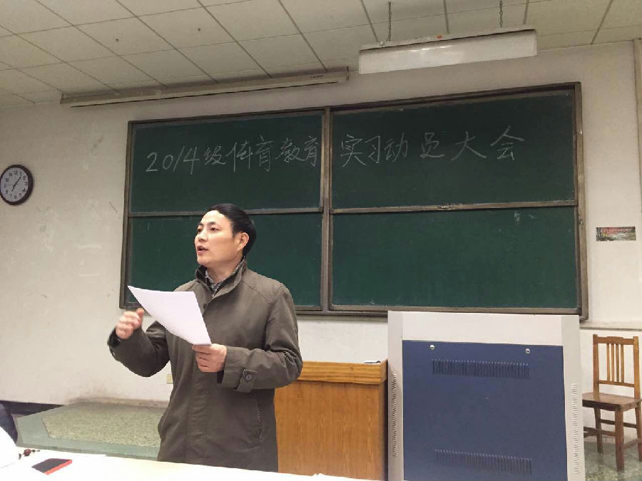 为确保体育教育专业教育实习工作的顺利开展,谈球吧官方网站于2月27日晚上19:00在4号教学楼101教室召开了2014级体育教育专业教育实习动员大会。经理助理董杰老师、教学科长杨刚老师、实习指导教师和2014级体育教育专业全体员工参加会议。