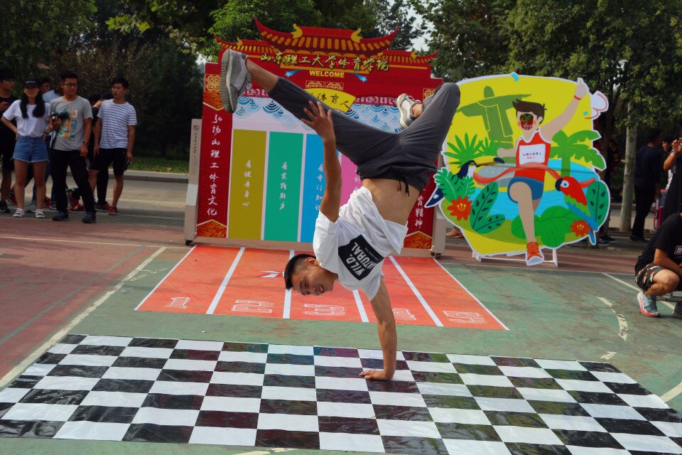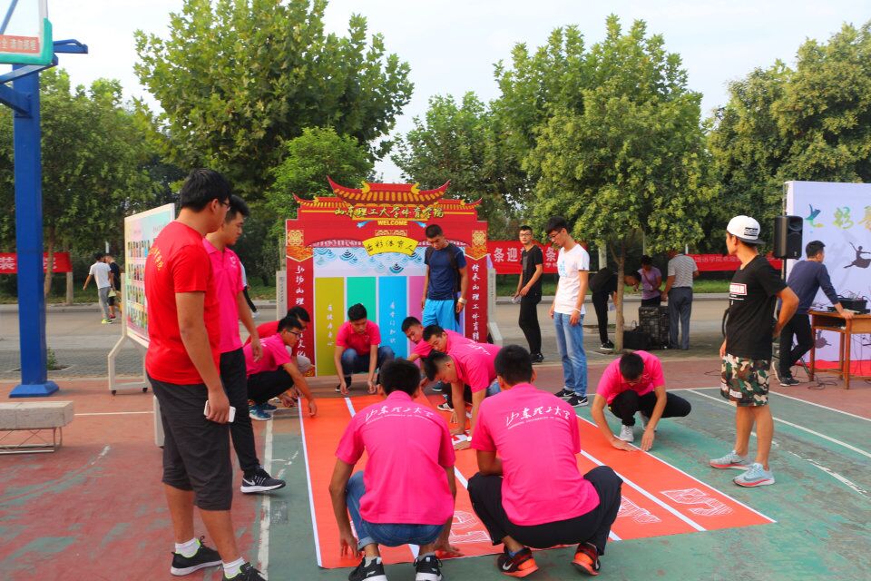 迎新展板新意斐然。五彩跑道通往谈球吧官方网站的彩门,两侧楹联分别书写“传承山理工体育精神”“弘扬山理工体育文化”。彩门正面书写着“有社会责任、有创新精神、有专门知识、有实践能力、有健康身心”的五有人才目标,预示着2017级新生将会在谈球吧官方网站努力成长为“五有人才”,为传承山理工体育精神、弘扬山理工体育文化贡献力量。