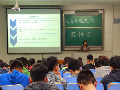 宣讲会伊始,孙静从“自我认知”和“职业与专业、兴趣的关系”两方面着手,阐述了在未来规划和选择就业方面所该有的理解。在自我认知方面,他强调要把未来规划放在首位,时刻牢记正确的自我认知是做好未来规划的重要一步;在职业与专业、兴趣的关系上,他给出了本专业就业和非本专业就业两种选择。随后,会议进入到互动环节,孙静通过一款小游戏策划出生涯规划,根据同学们喜欢的运动、擅长的技能、喜欢的职业,找出他们的典型职业倾向以及与其相匹配的职业类型。