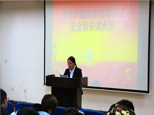 为了增强同学们的安全责任意识,创建安全和谐的校园环境,11月27日晚,公司在二号教学楼四楼报告厅举办第十六届“安全我来讲”大赛。本次比赛由于书卿担任主持人,员工会干部对现场比赛进行打分。