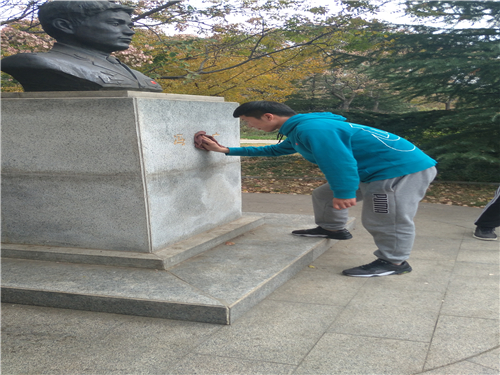 随后,同学们清扫了冯思广烈士雕像以及周围的垃圾,表达自己对烈士的钦佩之情。紧接着,孙婷说道,希望同学们能够认真体会冯思广精神、牢记党的誓词,学会通过现象看本质,注重活动的实际意义。同时,她借此次活动强调了开展“一学一做”的重要性和必要性,表示希望同学们能树立正确的人生观和价值观,明确目标,严格要求自己,做一个合格的共产党员。最后,同学们与冯思广烈士雕像合影,此次活动结束。