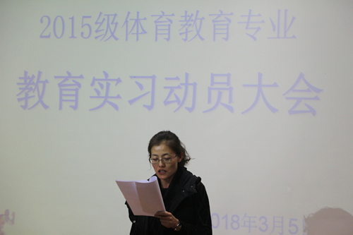 3月5日晚,谈球吧官方网站于2号教学楼4楼会议室召开2015级体育教育专业教育实习动员大会。此次大会由谈球吧官方网站教学工作办公室主任杨刚主持,谈球吧官方网站副经理张成宝、教学工作办公室韩军梅老师、2015级体育教育专业实习指导老师及2015级体育教育专业全体同学参加了此次会议。