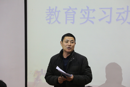 随后,韩军梅就教育实习的具体环节和部署安排情况进行了通报,就实习的各个环节,实习任务的分配以及实习点的安排等问题进行了详细讲解。
