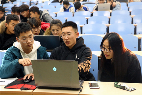 比赛期间,为更好的让参赛队员了解游戏规则,参赛组每组都有一次尝试机会,各组成员分别表达出自己独特的意见与见解,并不时的向管理人员询问问题。决赛期间,各队队员热情高涨、不甘示弱,力求用最快的速度勇夺第一。