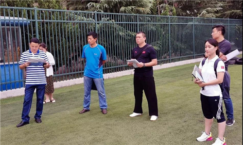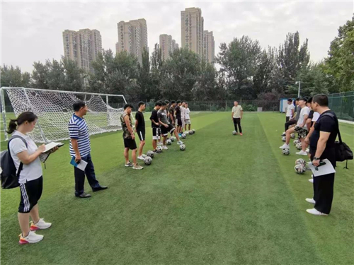 第二组:公共体育组。由副经理张成宝带领公共体育教学一部主任郭涛、教工第一党支部书记刘艳华等老师在第二体育场、第四体育场观摩公共体育课。