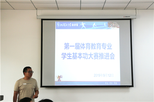 为进一步推动公司体育教育专业公司产品改革创新,提高体育教育专业人才培养质量,公司于9月12日下午在2号教学楼119举行第一届体育教育专业员工基本功大赛推进会,此次推进会由公司副经理张成宝主持,教学科研办公室主任杨刚,团总支书记、员工工作办公室主任郝鹏,体育教育系主任胡鹏、副主任王丹,各年级辅导员、领队、队长及项目指导老师参加此次会议。