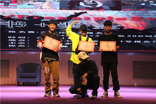 最后,经过激烈的角逐,由膀胱、赤赤组合赢得了Freestyle2v2冠军,小杨、荣荣组合获得Freestyle2v2亚军;在齐舞比赛中谈球吧队、LD 流行舞工作室、山东轻工职业公司TNT街舞社团分别获得一等奖、二等奖、三等奖。