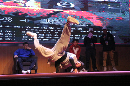 比赛开始前,魏中豪讲到,此次比赛共分为淘汰赛、晋级赛、半决赛、决赛四个环节。比赛在激情的音乐中拉开帷幕,精彩的比赛接踵而至,参赛选手稳扎稳打,用炫酷的街舞带动了现场气氛,独具特色的服装与发型,吸引着在场观众的眼球;众人齐舞表演,各个队伍激昂奔放,动感的舞步与劲爆的音乐引起了台下激烈的掌声。旋转,跳跃,高难度的空翻,引得现场尖叫连连。