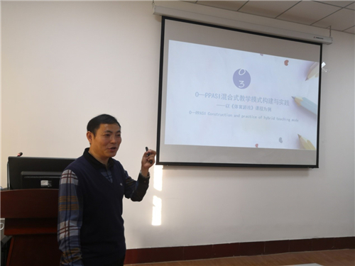 随后,杨刚主要从高校开展混合式教学的背景、公司技能类课程混合式教学现状分析、O—PPASI混合式教学模式构建与实践、推进技能类课程混合式教学的路径四个方面进行报告。在混合式教学背景中,他介绍了混合式教学的概念、目标、特征;金课的概念、特征、为什么要建设金课、金课与水课的区别、线上线下混合式金课。接着他分析了公司信息化教学立项及结项情况,自2013年以来公司信息化教学研究项目立项357项,其中技能类课程约40项,截止到目前还有259项未结项。然后,杨刚以《体育游戏》课程为例,从课程建设过程、O—PPASI混合式教学模式构建理念与流程、实施过程、教学效果等方面与老师们分享了O—PPASI混合式教学模式的构建与实践经验,并着重介绍了O—PPASI混合式教学模式的具体实施过程。最后,他讲到应从进一步完善课程信息化教学实施方案、加强师生信息化教学能力培训、鼓励教师积极开展技能类课程混合式教学研究并注重总结反思等四个方面来推进技能类课程混合式教学的发展。