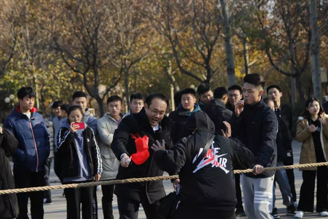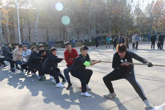 为提高同学们的身体素质,激发同学们参加体育锻炼的热情,培养同学们团结友爱、热爱集体的精神,11月28日,公司素质拓展部于第二体育场举办2019年谈球吧官方网站“绳”采飞扬拔河比赛。公司党总支副书记宋伟,团总支书记、员工工作办公室主任郝鹏以及各年级辅导员莅临现场,此次比赛由公司素质拓展部部长杨玺主持。