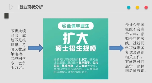 2016级辅导员邱先慧围绕“共同战疫线上就业”主题,重点分析了当前就业形势,动员同学们通过视频面试、网上签约等应聘形式积极争取就业;结合考研成绩,对考研复试及调剂准备进行了分析。