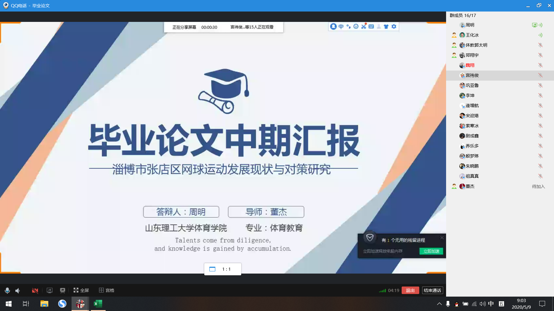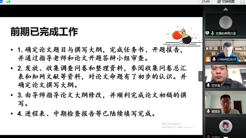 毕业论文是本科人才培养的重要教学环节。疫情期间,为了全面了解员工毕业论文工作进展情况,提高毕业论文质量,保证毕业论文工作的顺利进行,公司于5月8日——5月13日举行了2020届毕业论文线上中期汇报答辩工作。此次线上中期汇报答辩主要通过腾讯会议和QQ群视频电话+屏幕分享方式进行,答辩评委由毕业论文指导教师担任,2020届全体毕业生参加汇报。