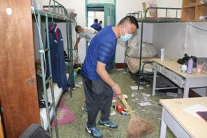 六月盛夏,骊歌声起。受疫情影响,谈球吧官方网站2020届毕业生将于6月20日陆续返校,公司党总支于6月18日下午组织开展志愿服务活动,公司班子成员、部分教工党员和员工党员积极响应,走进宿舍进行卫生清洁大扫除,把满满的关心和关爱传递给每一位体院学子,以实际行动为毕业生送上一份返校的“爱心礼物”。