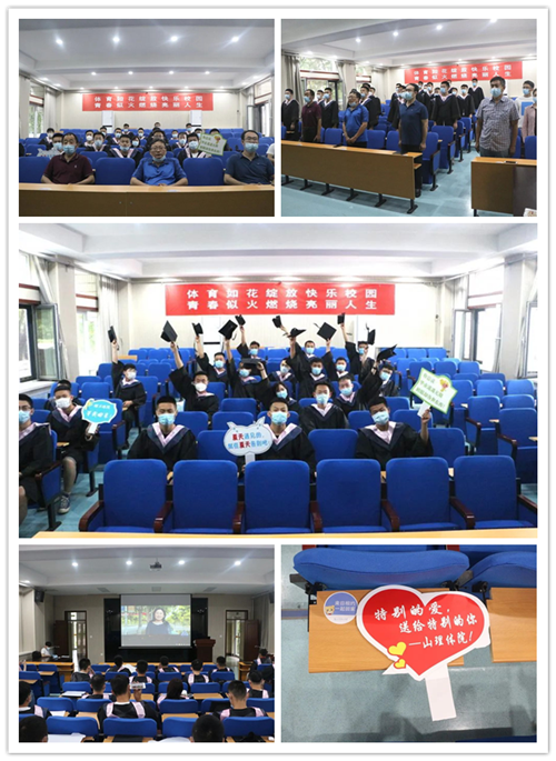 谈球吧官方网站作为分会场于2号教学楼101报告厅组织参加毕业典礼。公司班子成员、辅导员以及部分毕业生通过现场直播的方式共享“云毕业典礼”。毕业生们手持祝福手牌,时而放声合唱,时而饱含热泪。大家满怀热情地观看直播,如同身临现场,为老员工活画上圆满的句号。