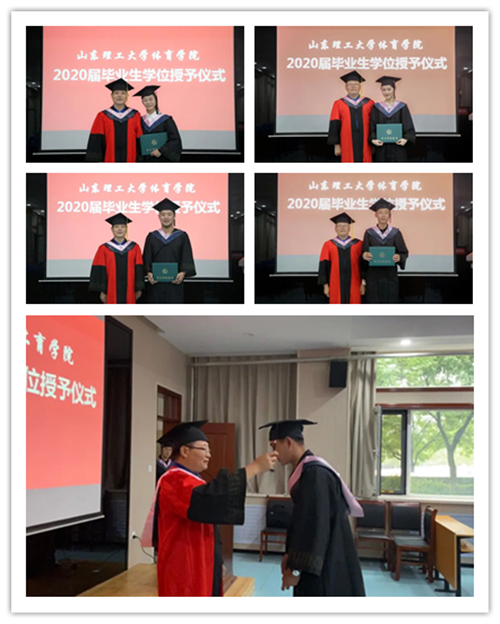 毕业典礼结束后,谈球吧官方网站举行2020届毕业生学士学位授予仪式。公司副经理马国栋、教授委员会主任杨刚依次为毕业生们颁发学士学位证书,并合影留念。