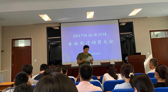 为确保实习工作的顺利开展,9月5日上午9:00,公司于2号教学楼101教室召开2017级运动训练专业实习动员大会。员工管理办公室主任郝鹏、教学秘书韩军梅、实习指导教师及2017级运动训练专业实习生参加此次动员大会。