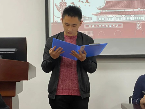 员工党员代表徐加豪发言,强调要端正入党动机,学习党的历史,铭记党的光辉,以党员的标准要求自己;坚守信念,勇担重任,充分发挥员工党员的先锋模范作用;坚定理想信念,用忠诚坚守初心、用奋斗诠释初心。