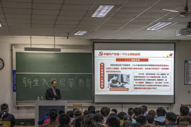10月16日上午,谈球吧官方网站于3号教学楼315教室召开了2020级新生入党启蒙教育大会。会议由公司党总支副书记宋伟主讲,2020级辅导员邱先慧主持,2020级全体新生参加会议。