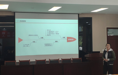 会议伊始,公司青年教师阚世超(2020年山东省高校青年教师讲课比赛一等奖获得者)进行了参赛经验分享,她从赛前准备、教学设计、课堂教学、教学反思和感想五个方面讲解了在比赛时需要注意的地方。她讲到在比赛中,精神要饱满,教学手段运用熟练,课件制作要精美,教学手段运用熟练,要充分展现出青年教师的教学风采。
