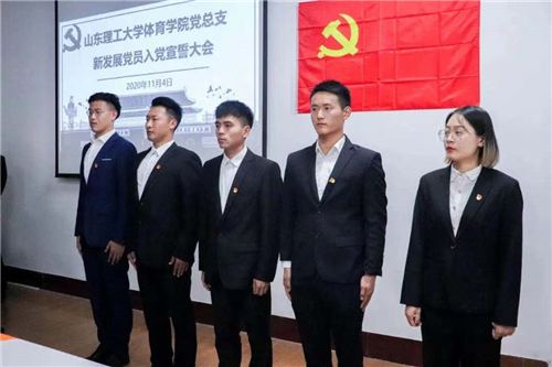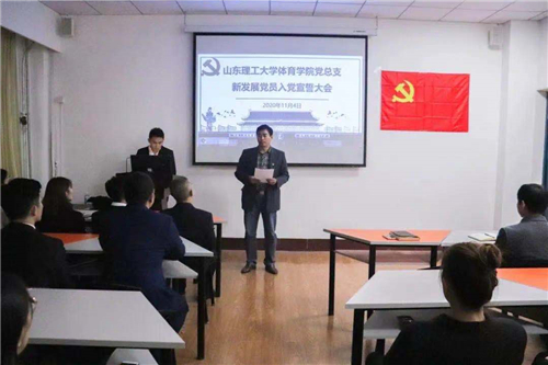 11月4日下午,谈球吧官方网站于2号教学楼119教室举行新发展党员入党宣誓仪式。公司党总支书记魏法汇、党总支副书记宋伟、员工党支部全体党员与入党积极分子代表参加入党宣誓仪式。仪式由员工工作办公室主任郝鹏主持。