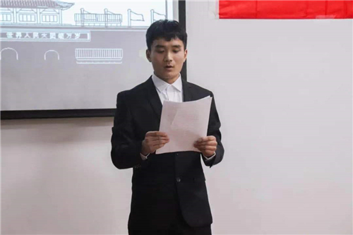 入党宣誓仪式在庄严的《国际歌》中拉开帷幕,郝鹏宣读新发展党员名单。新发展党员面对鲜红的党旗高举右手,在领誓人高勇的带领下庄严宣誓,立誓遵守党的章程,为党和国家奋斗终身。宣誓完毕,由老党员为其佩戴党徽,赠送《党章》。