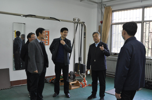 在运动医学实验室,邓书记和公司教师王小迪进行交谈,在交谈中询问有关实验室的建设管理和教学安排等情况。邓书记结合公司汇报和现场检查情况,对公司进一步做好教学训练、群体活动工作提出具体指导意见。