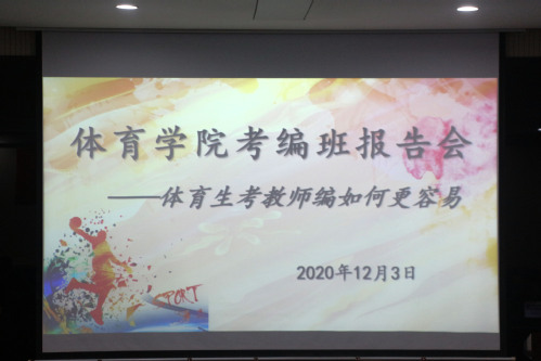 紧接着,程敏以“体育生考教师编如何更容易”为主题进行专题报告会,围绕考编政策、体育专业招考形式以及如何积极备考三个方面内容展开。他提到今年的考编形势严峻,建议同学们吃透书、夯实理论基础,全面提升体育专项技能,并在能力范围内确定合适的目标;并围绕“限不限时间”和“限不限师范类”问题进行了现场讨论。
