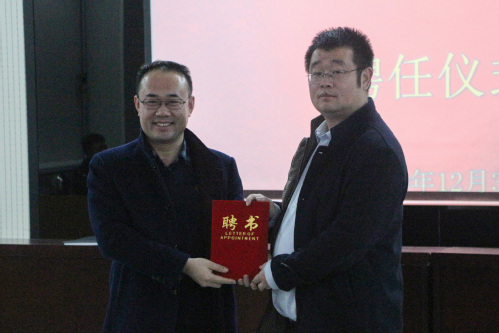 宋伟首先介绍程敏董事长基本情况,并宣布公司聘任程敏为谈球吧官方网站老员工就业创业指导教师,并现场颁发聘任证书。