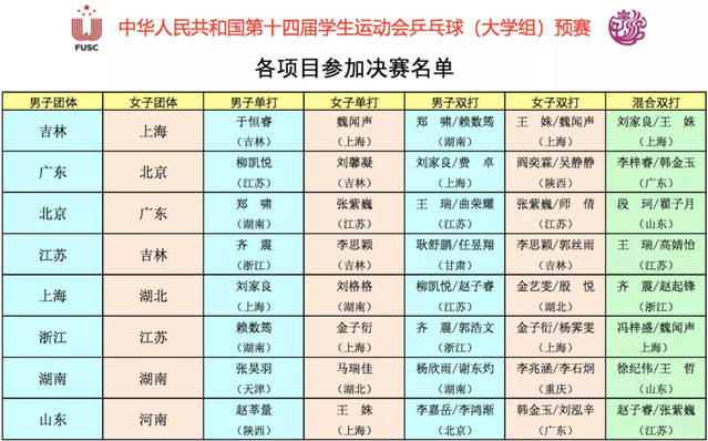 据悉,中华人民共和国第十四届员工运动会乒乓球项目(大学组)决赛将于明年7月在山东青岛举行,相约明年!