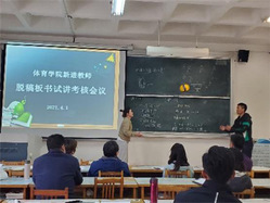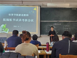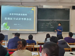 五位教师按抽签顺序分别选取担任的《网球》、《花样跳绳》、《排球》、《跆拳道》、《体育心理学》课程内容进行了脱稿板书试讲,考核小组专家从教学状态、教学内容、教学组织、课堂管理、教学效果等方面进行了认真听课与评价。