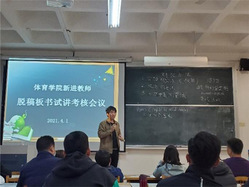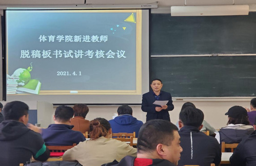 4月1日下午,谈球吧官方网站在1教306教室举行新入职青年教师的脱稿板书试讲考核会议,副经理马国栋、经理助理杨刚、系部主任、青年教师及指导教师参加本次会议。活动由经理助理杨刚主持。