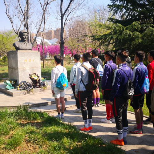 下午两点三十分,全体成员来到冯思广纪念碑处,支部书记郭涛简要说明了本次纪念活动的原因和意义,希望同学们学习冯思广无私奉献、舍己为人的的精神,这不仅仅是一时行为,要永远铭记在心。紧接着,男子足球队队员张光耀带领全体人员学习冯思广同志的英勇事迹,向其为保卫人民生命财产,将个人安危置之度外的精神致敬;随后,艾力亚尔代表与会人员为冯思广雕像献上花束,到场人员为冯思广烈士和革命英烈集体默哀三分钟。纪念结束,全体成员对铜像周围的环境卫生进行了清理,擦拭铜像上的尘土,使英雄重现风采。