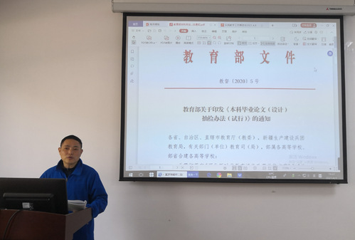 杨刚带领与会教师深入学习《教育部关于印发<本科毕业论文(设计)抽检办法(试行)>的通知》(教督〔2020〕5 号)。他提到,导师要及时向员工传达文件精神,严格毕业论文过程管理,加强毕业论文工作纪律和规范教育,指导方式结合线上线下方式灵活进行,讲究工作实效,确保毕业论文质量。同时他还要求实习支教指导教师应该认真研读深刻领会师范专业认证新理念、新要求,落实好实习支教各项工作,做好与实习生及实习支教单位领导老师的沟通交流工作,关注实习生思想动态,经常对员工进行安全教育,加强对实习生的管理。