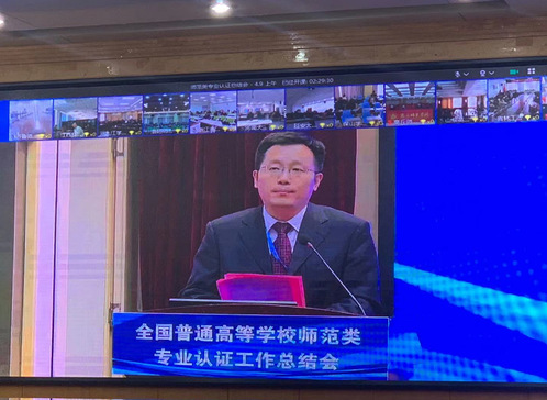 为进一步检视公司师范类专业认证工作启动三年来取得的进展和成效,深入分析存在的问题和挑战,4月9日,教育部高等公司产品评估中心在华南师范大学召开“师范类专业认证总结会”,公司教学质量评估评价中心组织公司相关人员统一于鸿远楼一楼报告厅参加视频会议。公司领导班子成员、专业负责人、骨干教师和专业认证工作小组成员参加会议。