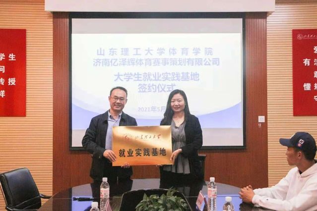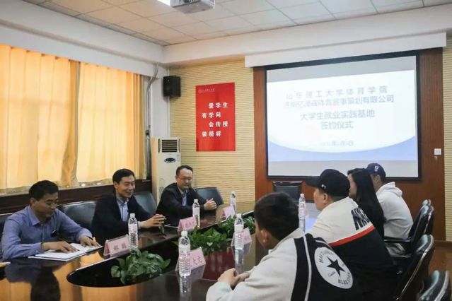 5月8日上午,谈球吧官方网站与济南亿泽辉体育赛事策划有限公司在2号教学楼111会议室,就共建老员工就业实习基地举行了签约仪式。公司党总支书记、经理魏法汇,党总支副书记宋伟,亿泽辉人事经理陈敏和教练组组长刘渝锦放参加了本次签约仪式。仪式由宋伟主持。