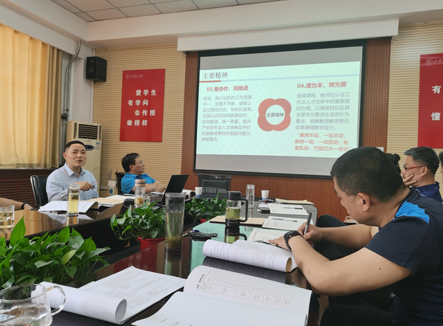 会议伊始,工作认证小组各负责人依次汇报自评报告撰写、佐证材料准备进展情况,梳理存在问题,研讨制定解决措施。