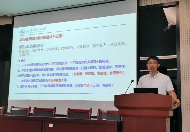 孙贤明主要从“OBE理念、课程大纲的撰写、面向产出的课程目标达成情况评价机制、课程思政工作”四个方面进行了深入浅出的阐述,既有理论高度,又有实践经验,既有宏观政策解读,又有实操性的技巧,为我们进一步推进专业认证工作具有很强的指导意义。