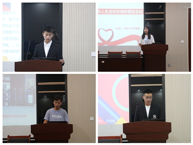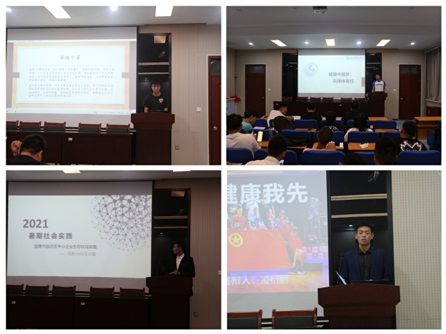 本次答辩会共有17支队伍,各队答辩时间为5分钟。各实践队选题新颖,包括传承红色文化、了解体育产业现状、实践教学等热点话题,答辩人通过ppt展示,从实践前准备、实践过程、实践成果等多方面阐明了本队社会实践的全部实践过程。