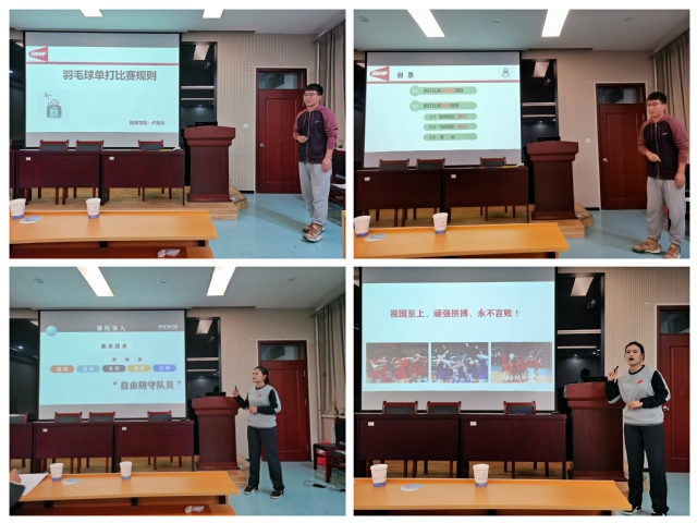卢海龙、孙粼婧两位教师分别以“羽毛球单打比赛规则”“自由防守队员”为专题进行课公开课展示。