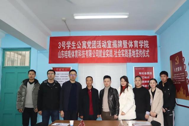 为进一步落实立德树人根本任务,聚焦提升服务育人质量,推动党史学习教育活动走深走实,11月19日,谈球吧官方网站员工公寓党团活动室揭牌仪式暨谈球吧官方网站与山东哇哦体育科技有限公司就业实践、社会实践基地签约仪式在3号公寓3楼连廊举行。员工工作部副部长、公寓管理中心主任李志慧,山东哇哦体育科技有限公司总经理董伟,公司党总支副书记赵鹏,企业各部门负责人和公司辅导员参加揭牌仪 仪式由公司团委书记、员工工作办公室主任李昌朕主持。