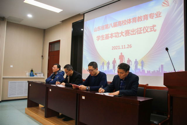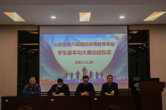 为强化体育教育专业员工教学基本素质和基本能力,提升人才培养质量,公司选派8名2019级体育教育专业员工参加11月28日-12月2日在滨州公司举办的山东省第八届高校体育教育专业员工基本功大赛。11月26日,公司于2号教学楼101报告厅举行基本功大赛出征仪式,公司教务处副处长牛学东受邀莅临仪式,公司党总支副书记赵鹏,科研副经理马国栋,教学科研办公室主任韩军梅,指导教师以及体育教育专业所有参赛选手共同参加会议。