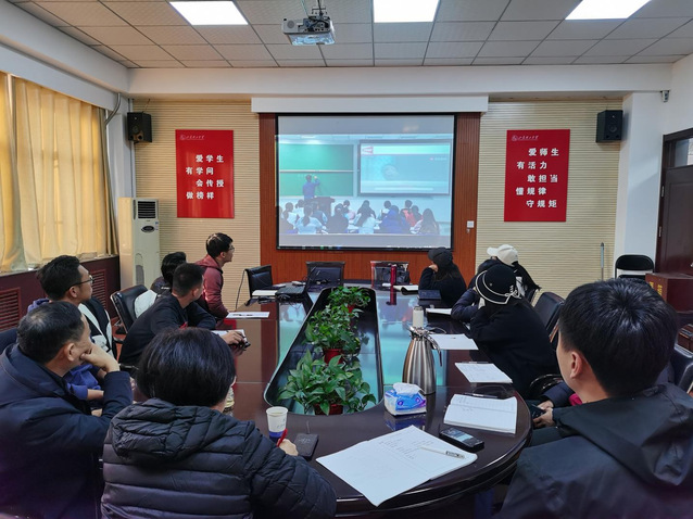 与会教师观摩卢海龙一节45分钟的课堂教学实录,并就教学中存在的问题进行了讨论交流。李静进行点评,肯定优点的同时从录像技术、PPT制作、讲课着装、学情分析、课堂导入、思政元素融入等方面提出几点意见与建议。专家点评到位、深入浅出、从思想上、职业发展上引领青年教师。