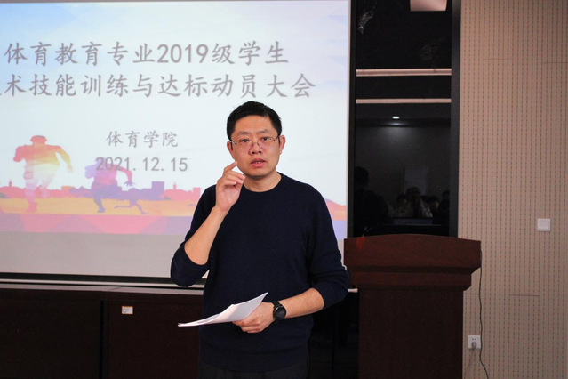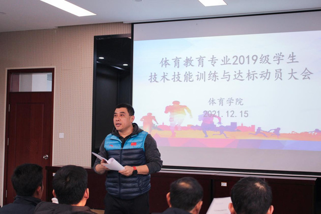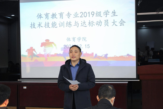 为落实“员工中心,产出导向,持续改进”认证工作理念,进一步提高员工专业技术技能水平,更好适应中学体育工作要求。12月15日上午,公司于2教101会议室举行体育教育专业2019级员工技术技能训练与达标动员会议。公司党总支副书记赵鹏,副经理杨刚,团委书记、员工工作办公室主任李昌朕,教学科研办公室主任韩军梅,体育教育系主任胡鹏,辅导教师以及体育教育专业2019级全体员工出席会议,此次会议由杨刚主持。